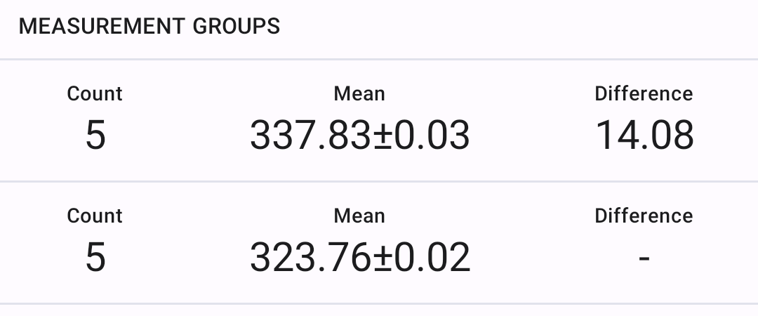 Tap on a measurement group to see the individual measurements and summary statistics. What?
